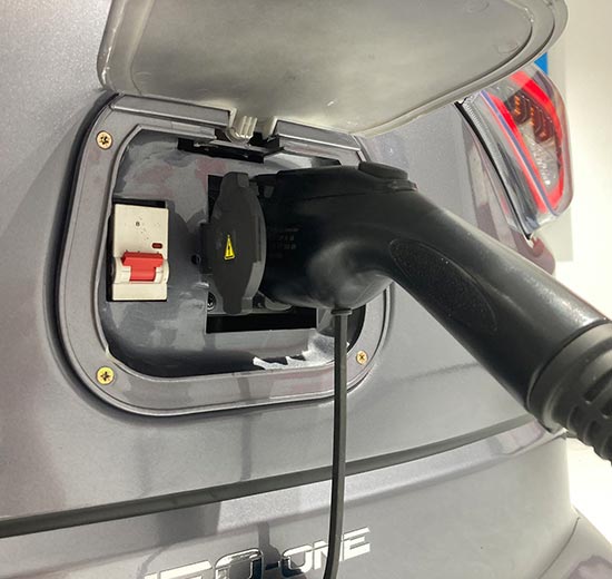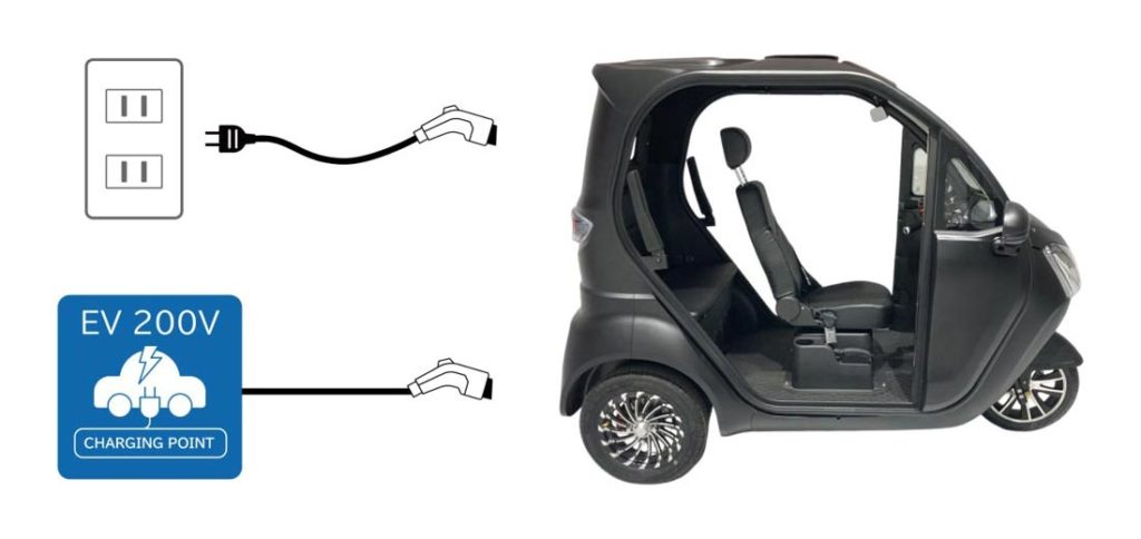 ご家庭で充電を行う場合は、付属する専用ケーブルで車体とコンセントを繋ぐだけで充電が開始されます。